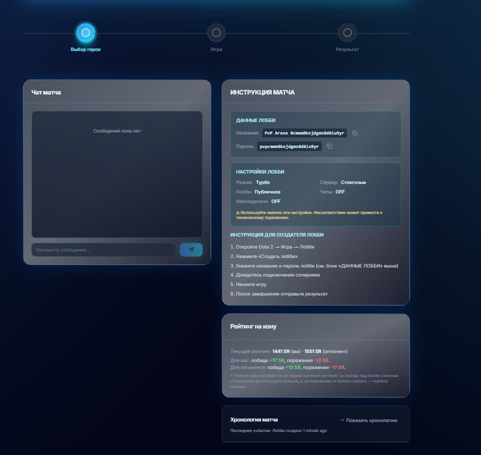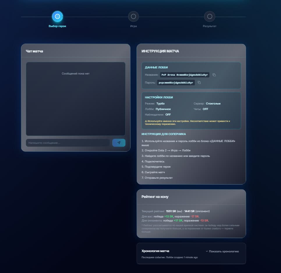 - Use the lobby name and password from the "Lobby data" block on the match page